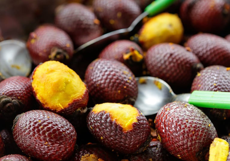 El aguaje es el fruto de la palmera Mauritia flexuosa, originaria de la cuenca amazónica y conocida regionalmente como "moriche" o "buriti". Este superalimento destaca por su gran versatilidad, utilizándose tanto en la alimentación tradicional como en la cosmética avanzada debido a sus propiedades para la salud hormonal y el cuidado de la piel.
